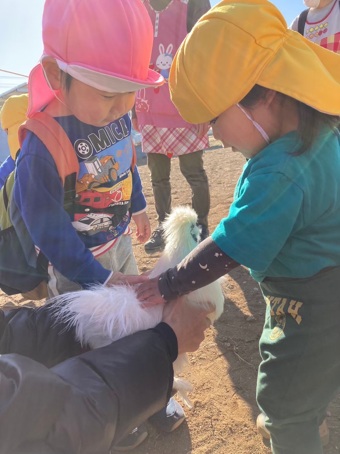 動物たちと schedule 2024年3月18日 Tせんせい日々のようすにこにこ記録 【写真は保護者の同意を得た上で掲載しています】 お散歩先に、やぎ🐐とひよこを飼育されているお宅があり、いつも寄り道をさせて頂いています😊 保育園でも、チャボとうさぎを飼育していて、 大きいクラスの子どもたちが、餌やりや水替え、トイレの掃除などお世話をしています🐓 動物との触れ合いを通して、命の大切さを学んでいます🐇