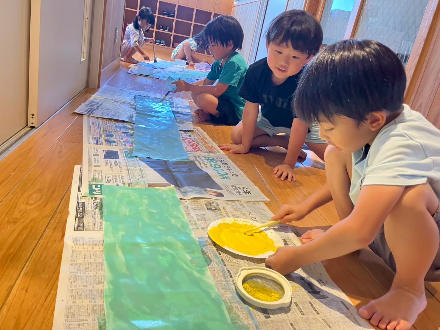 7月に、七夕🎋そうめん流しがありました! 七夕に向け、準備が進んでいます♪ 年長さんは長い天の川作りをして⭐️ 各クラス、染め紙をした短冊に願いを書いて飾ります。 当日は、みん…