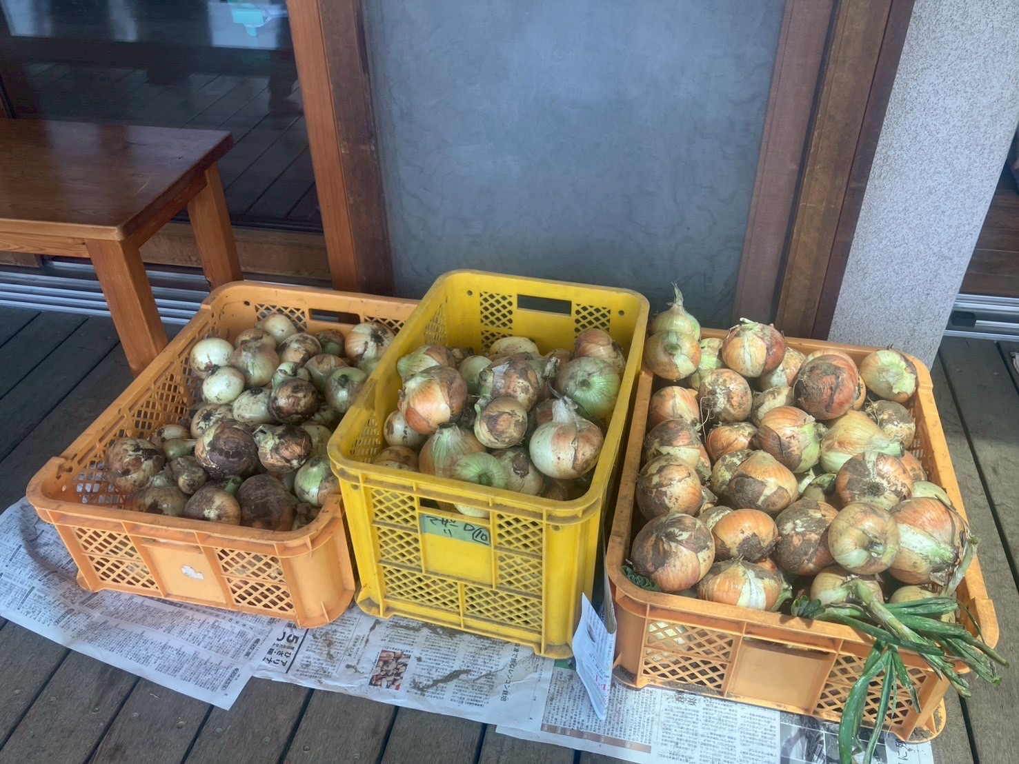 たくさん収穫出来たので、玉ねぎ屋さんの開店準備。