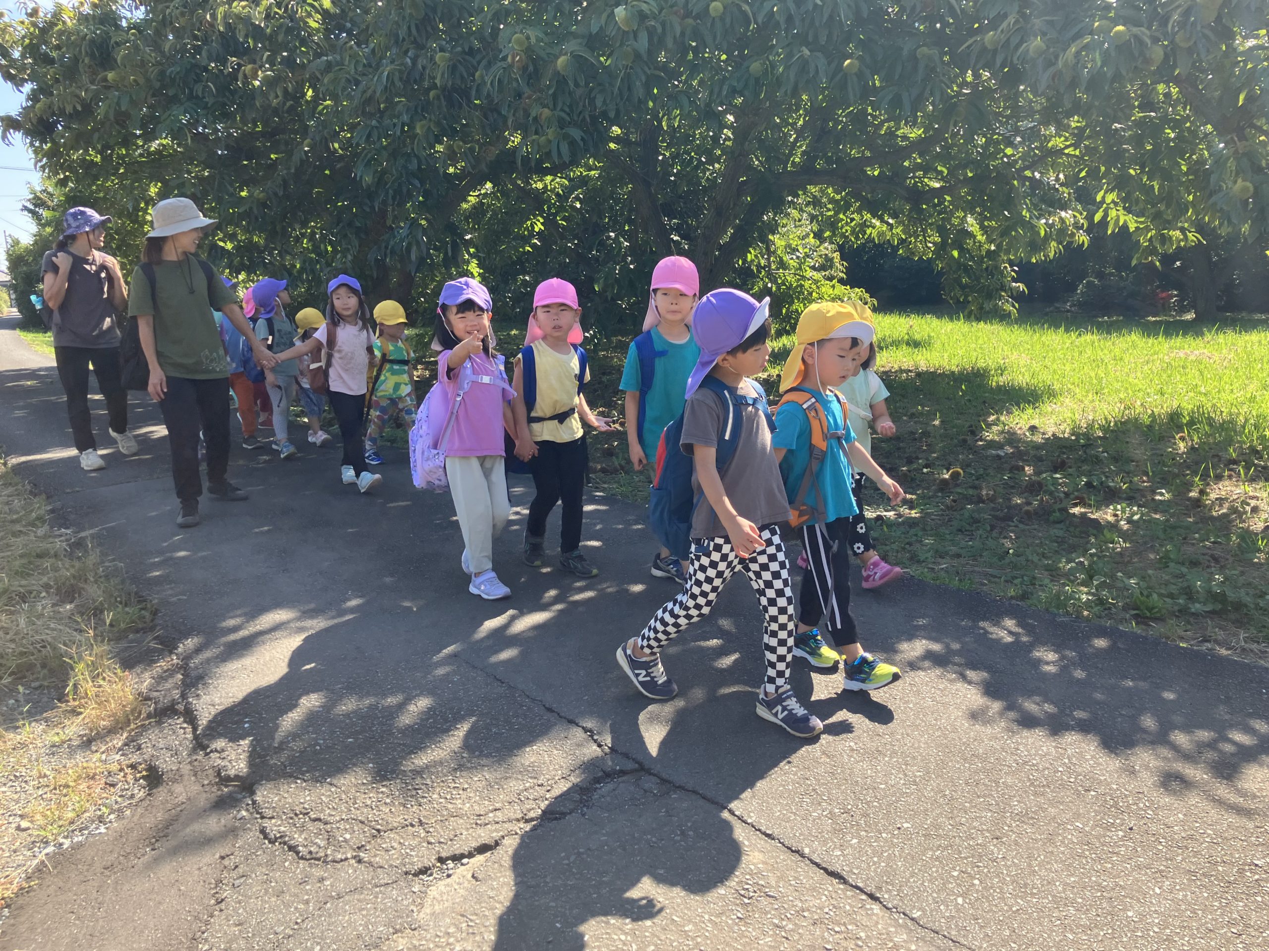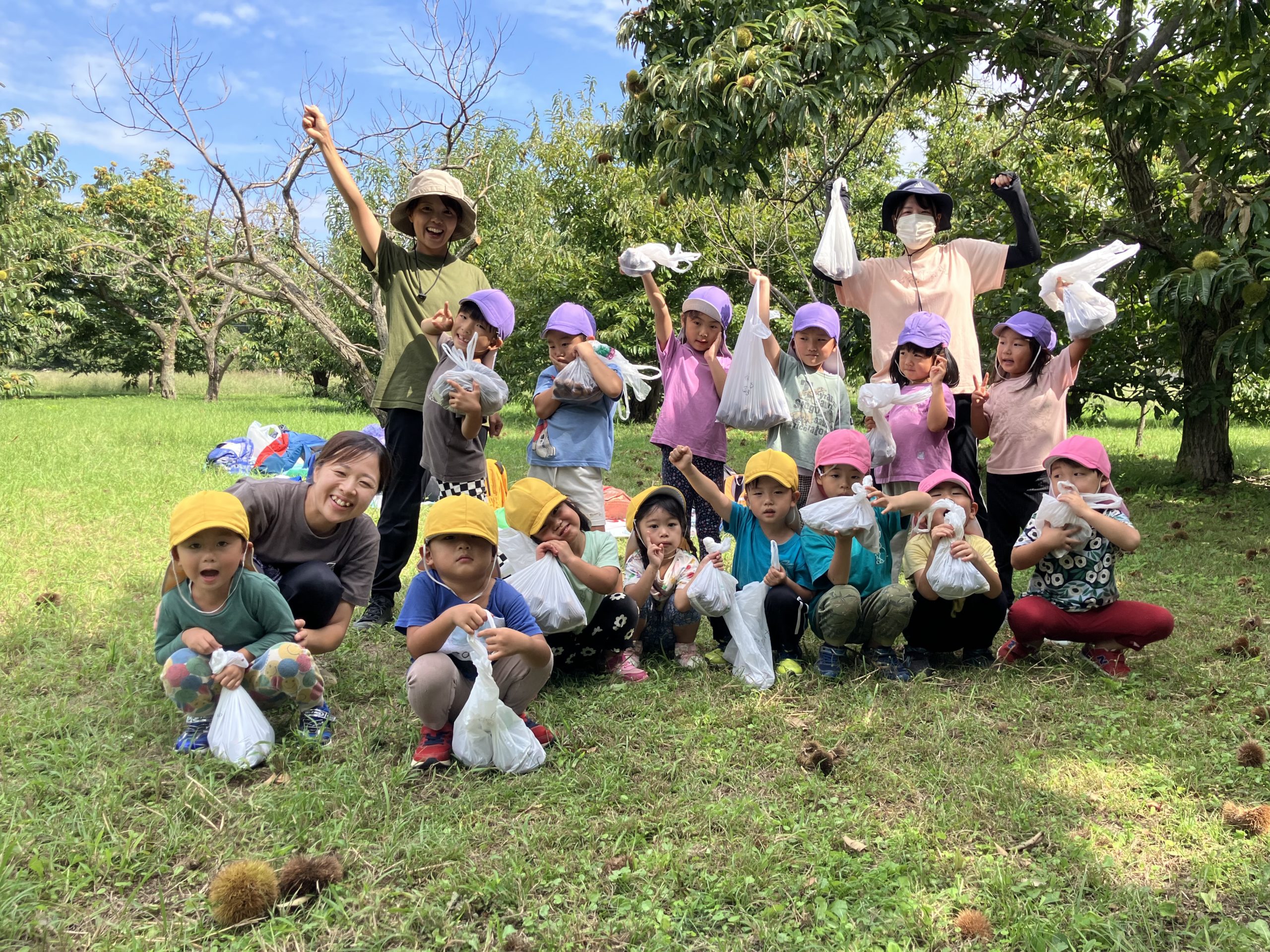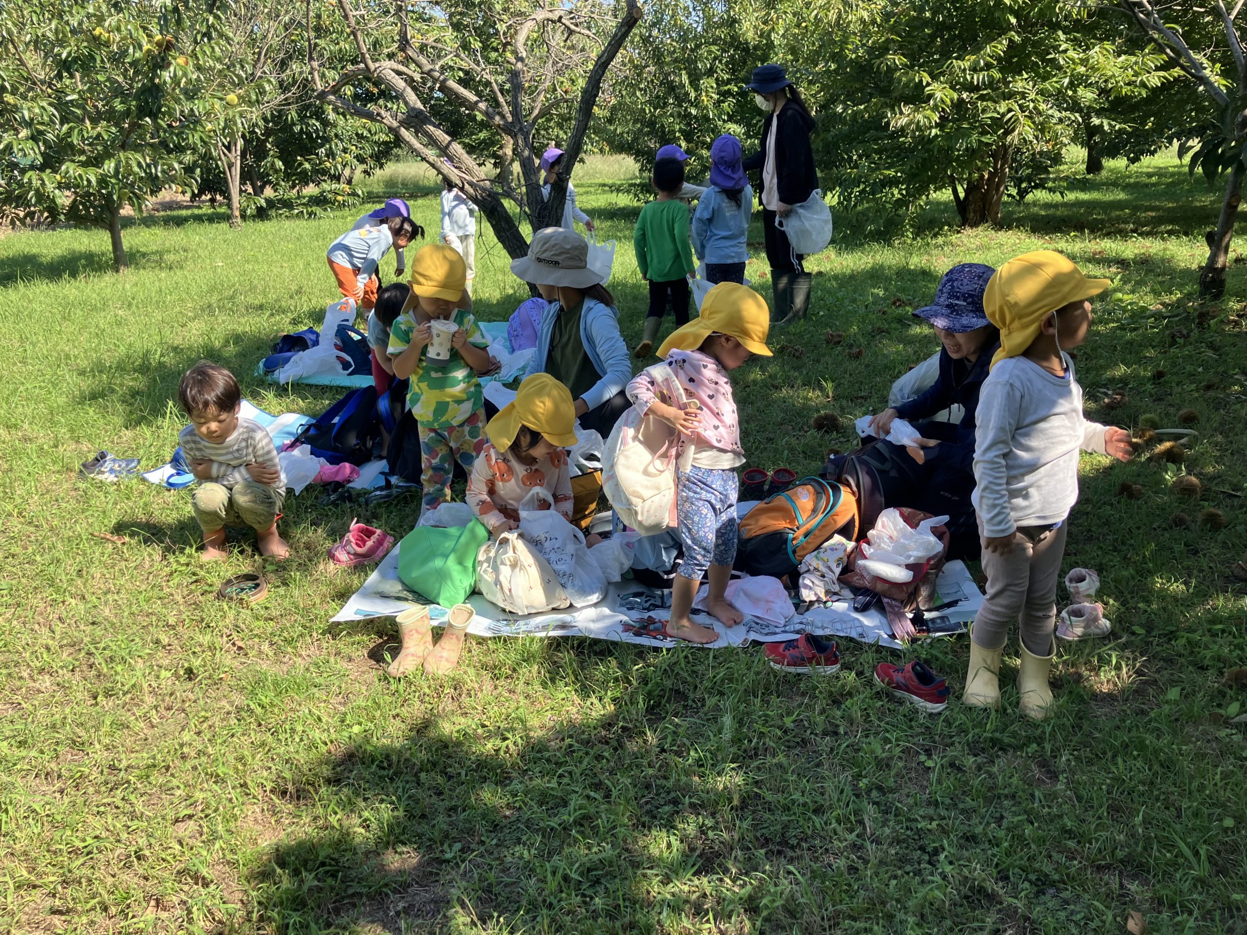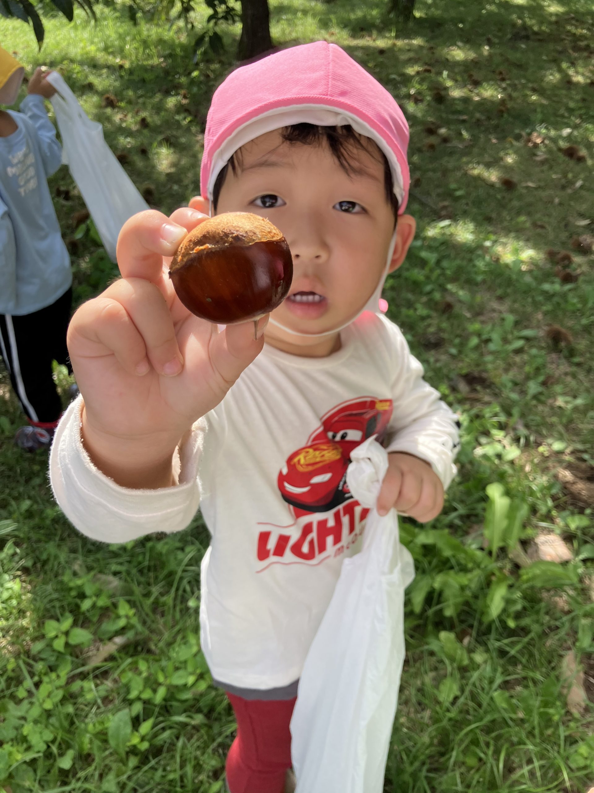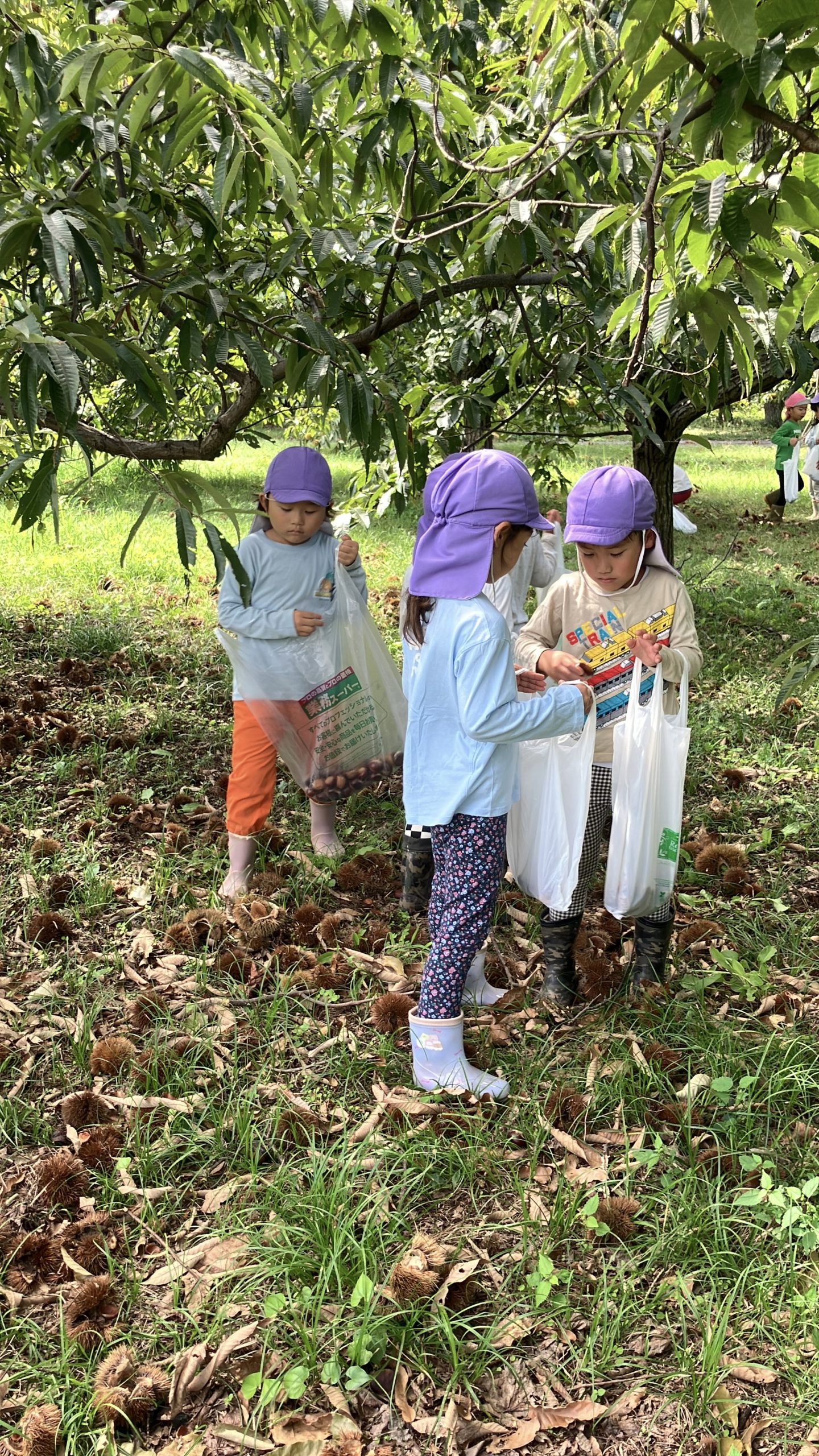 お散歩がてら、3・4・5歳児が栗拾いへ行きましたよ♪