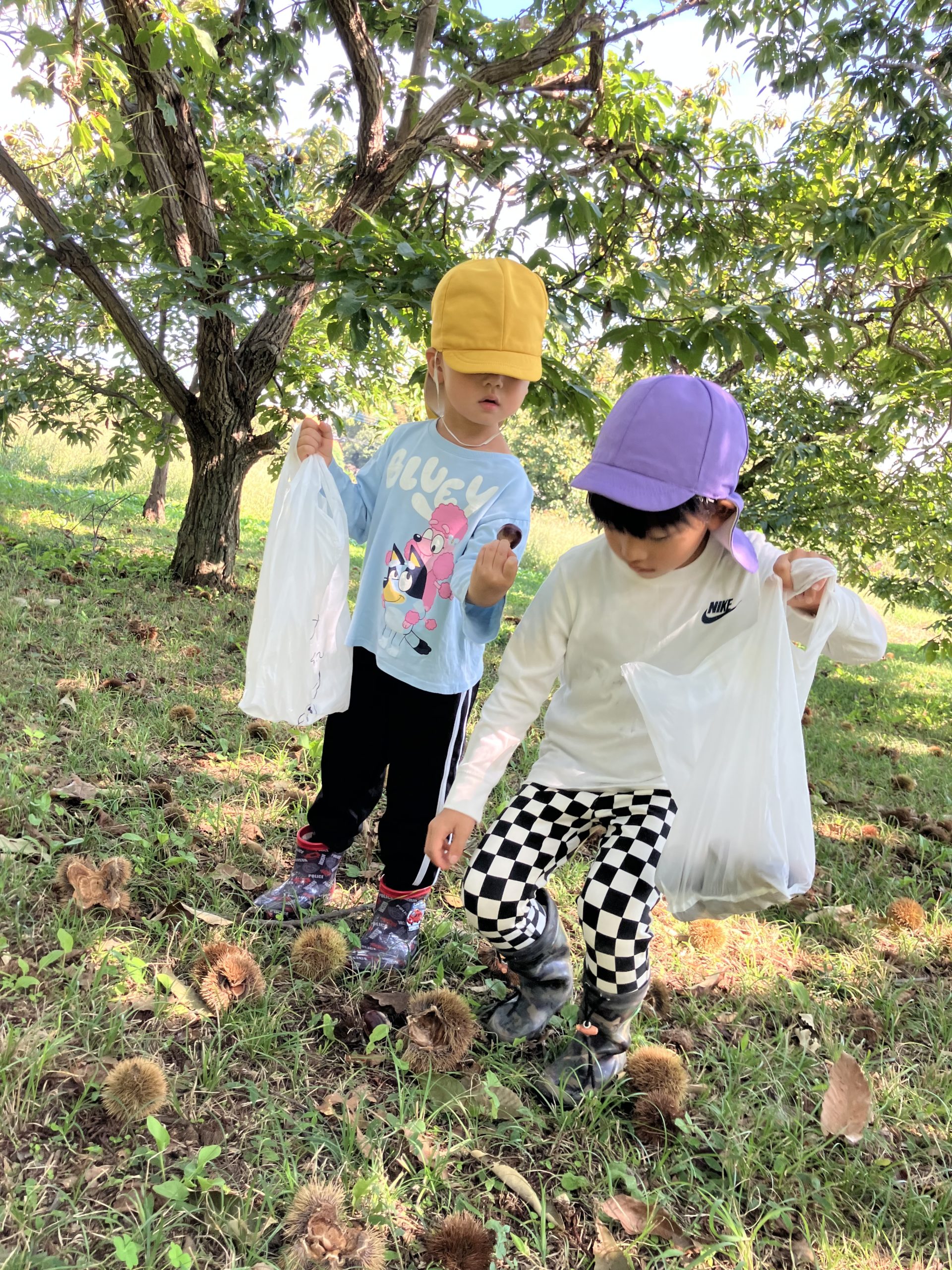 栗畑の地主さんのご好意で、毎年栗拾いを体験させていただいています✨