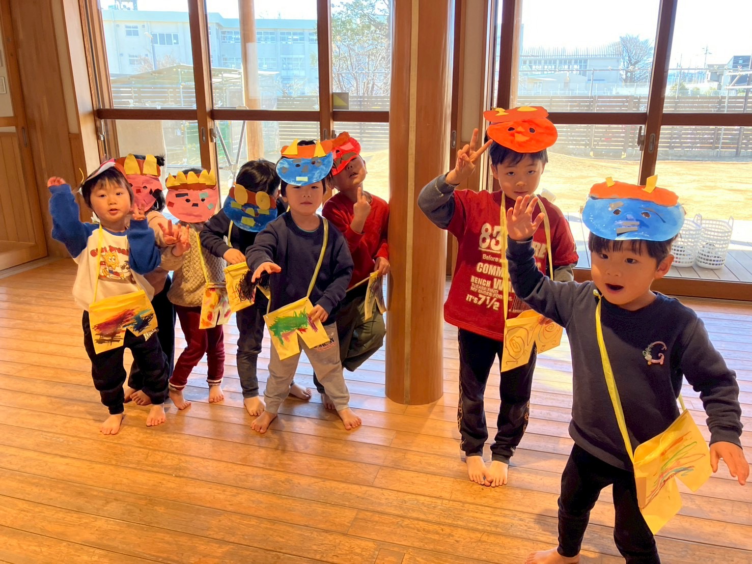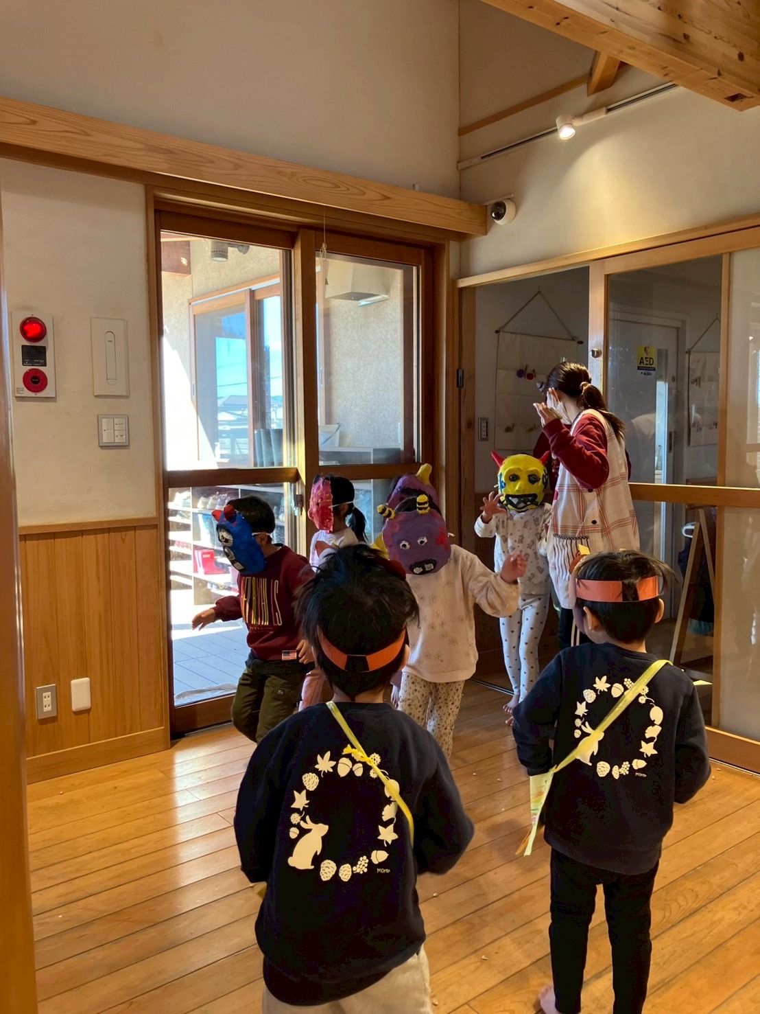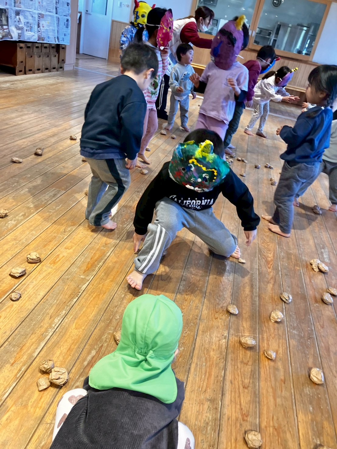 小さい子も驚きながらも、紙を丸めたお豆を投げます☺️