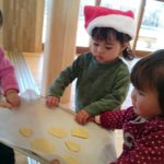 12/25に保育園でクリスマス会を行いました🎄💕 みんなでお楽しみの時間!クッキーの型抜きをしました。 0歳クラスはビニール袋の上から手でぺったん!…