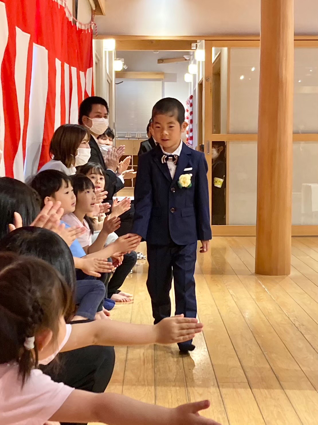 【写真は保護者の同意を得た上で掲載しています】 正装に着替えて第二部のはじまりです😀 堂々と入場! 在園児とハイタッチ🤚! 卒園証書授与✨ とても立派な姿です! …