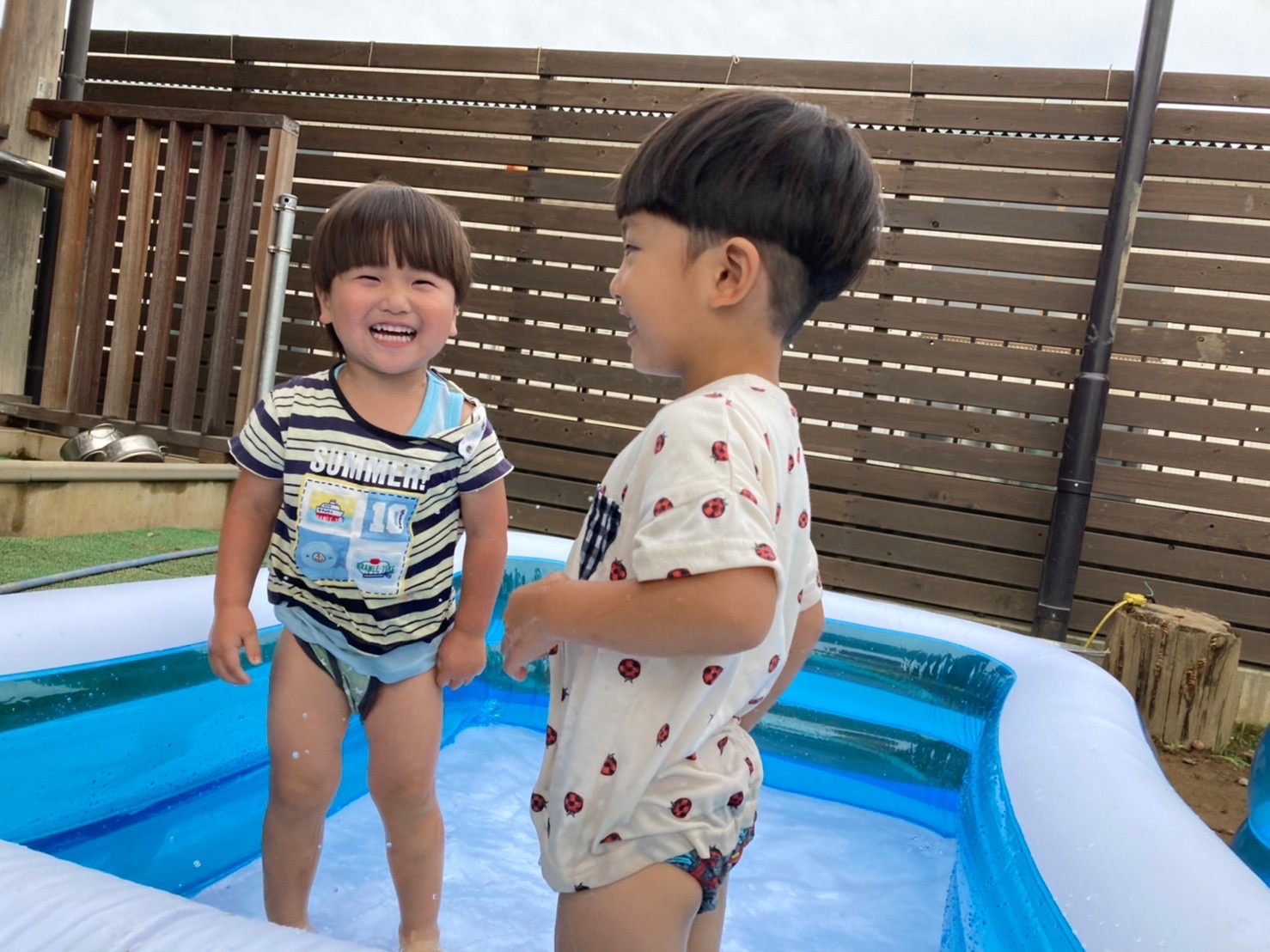 【写真は保護者の同意を得た上で掲載しています】 あいにくのお天気の日もありますが、 お天気がいい日は、身体を動かした後に プールあそび!✨ 小さい子は水の感触を楽…