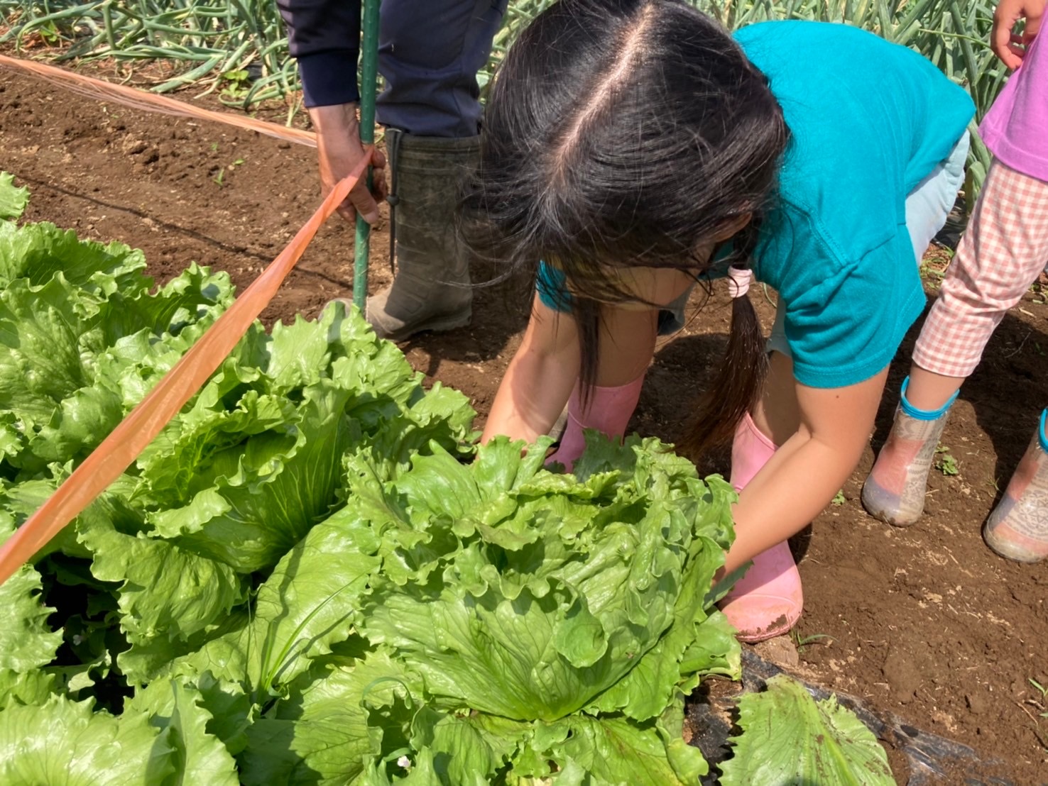 レタスの収穫 schedule 2024年5月24日 Tせんせい食育のこと(給食)日々のようすにこにこ記録 【写真は保護者の同意を得た上で掲載しています】 農園の畑にて、 年長さんがレタスの収穫をしましたよ! よいしょ!よいしょ! 大ぶりなレタスを力いっぱい引き抜きました😊 水道に運んで泥を洗い流し‥ レタスとったどー🎵 ちぎちぎして みんなで味見をしました! 採れたてのレタスは シャッキシャキッで甘味があって美味しい😋 小さいクラスや、大人たちにも配り歩き 甘くて美味しいね〜! と声をかけられて得意顔でした😊