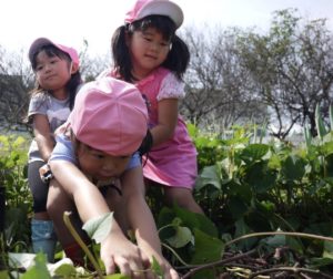 今日は山ぐみ、川ぐみ、海ぐみ、空ぐみ、星ぐみの全クラスでさつまいも掘り。