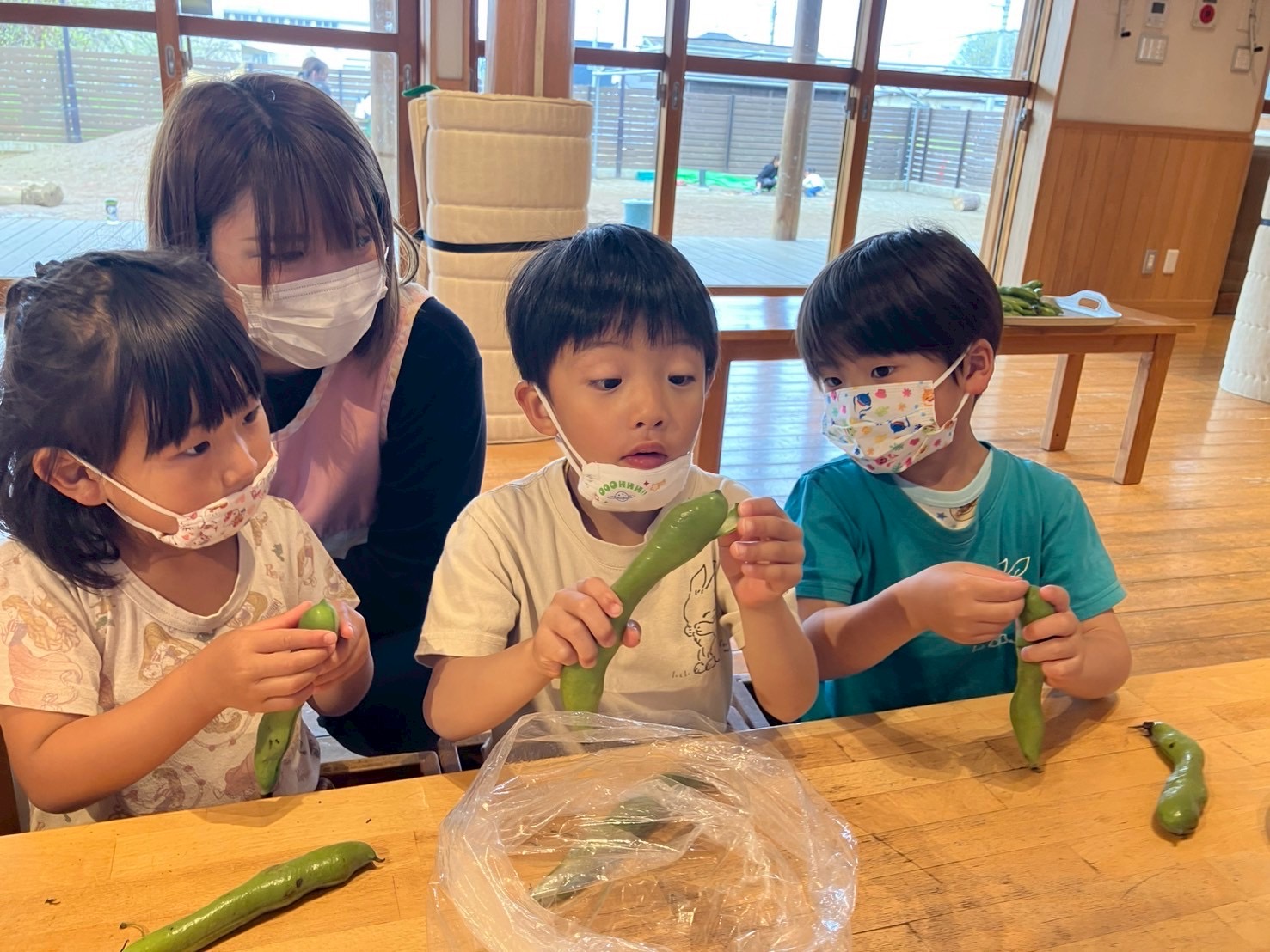 【写真は保護者の同意を得た上で掲載しています】 もれあ保育園では、毎月集中食育を行っております🍳 栄養士が計画し、子どもたちに食材に触れたり、野菜の皮剥きや、おやつ作りに取り組みます。 4月の食育はそら…