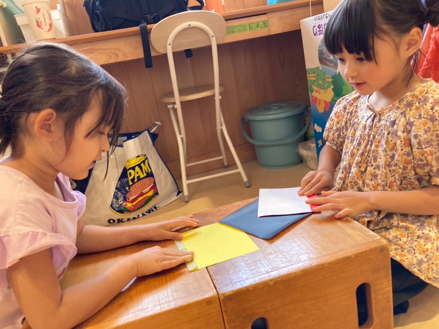 【写真は保護者の同意を得た上で掲載しています】 こどもの日集会のこの日、朝から何やら製作中の年長の女の子たち…! 何を作っているかはお楽しみに🎵 給食は、こいのぼりチキンライス🎏 大…
