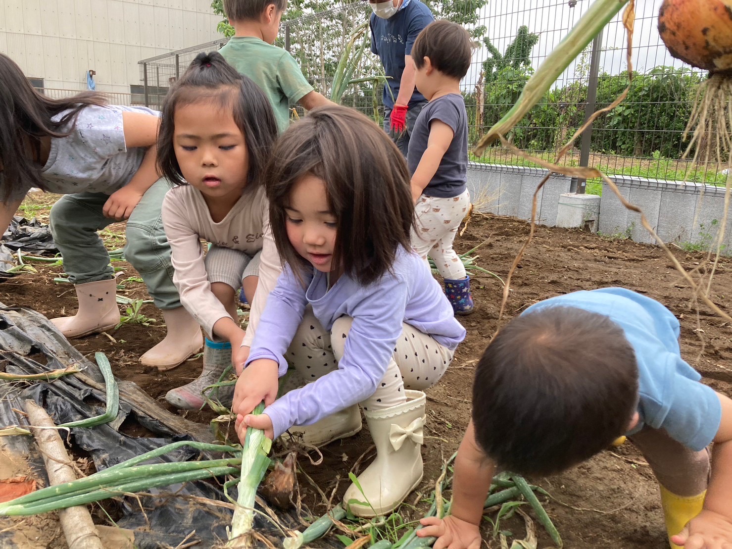 【写真は保護者の同意を得た上で掲載しています】 農園の玉ねぎ🧅を収穫をしました! 力を込めて引き抜くのも楽しくて みんな大喜びでした🧅 …
